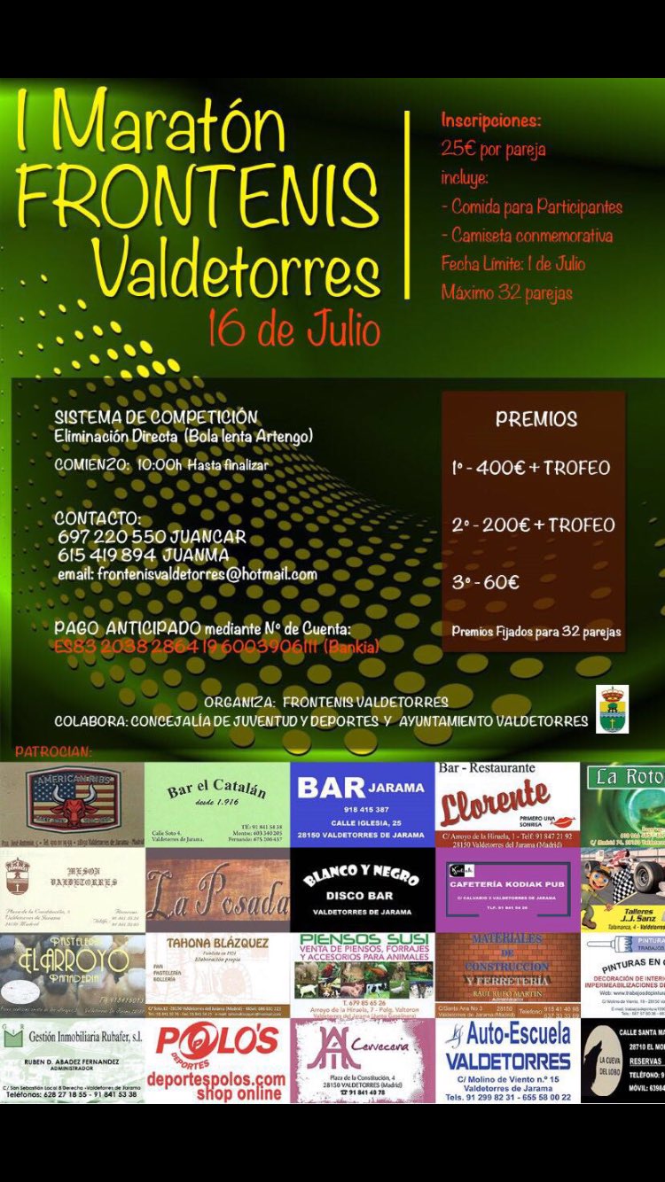 Lugar Frontón municipal del Alalpardo. Calle Alcalá, 23 28130 Alalpardo